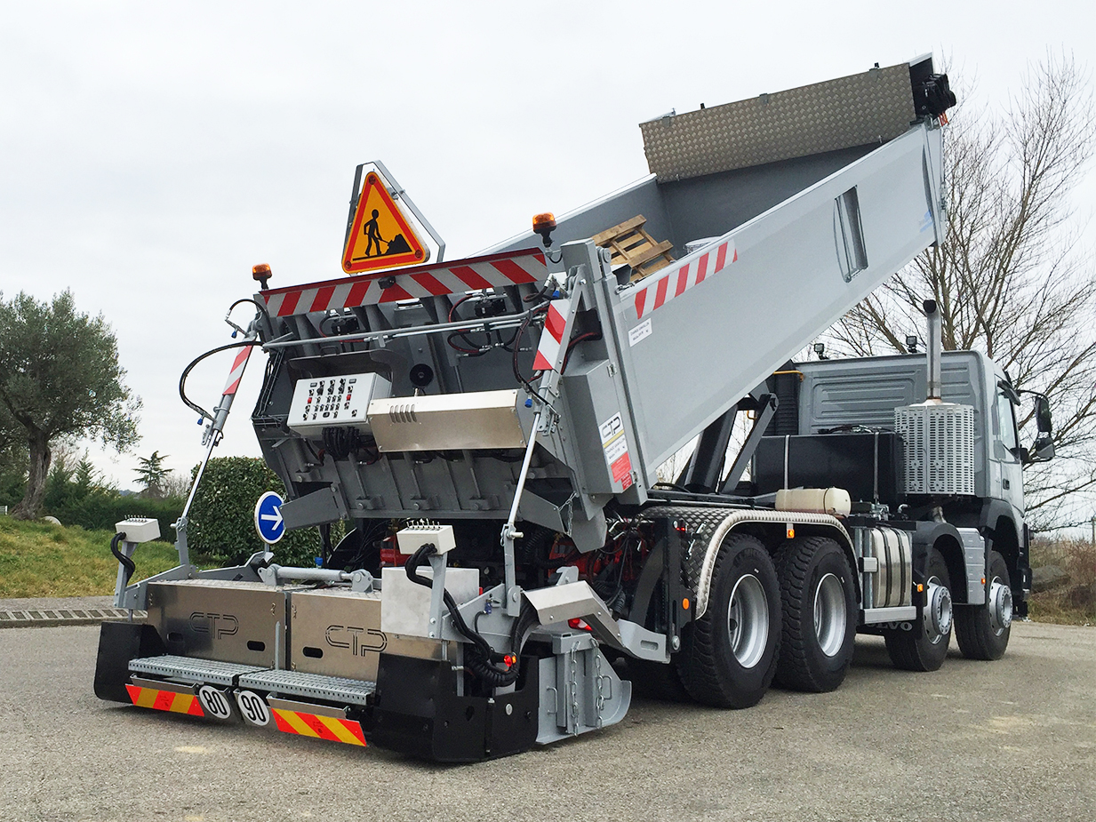 Le distributeur d’enrobés et granulats sur benne basculante.
